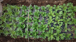 軟弱野菜(こかぶ・小松菜・水菜)。こかぶと水菜の間引きをして追肥をしました。間引きしたこかぶと水菜はランチのスパゲッティのトッピングになりました。柔らかくて大変美味!
